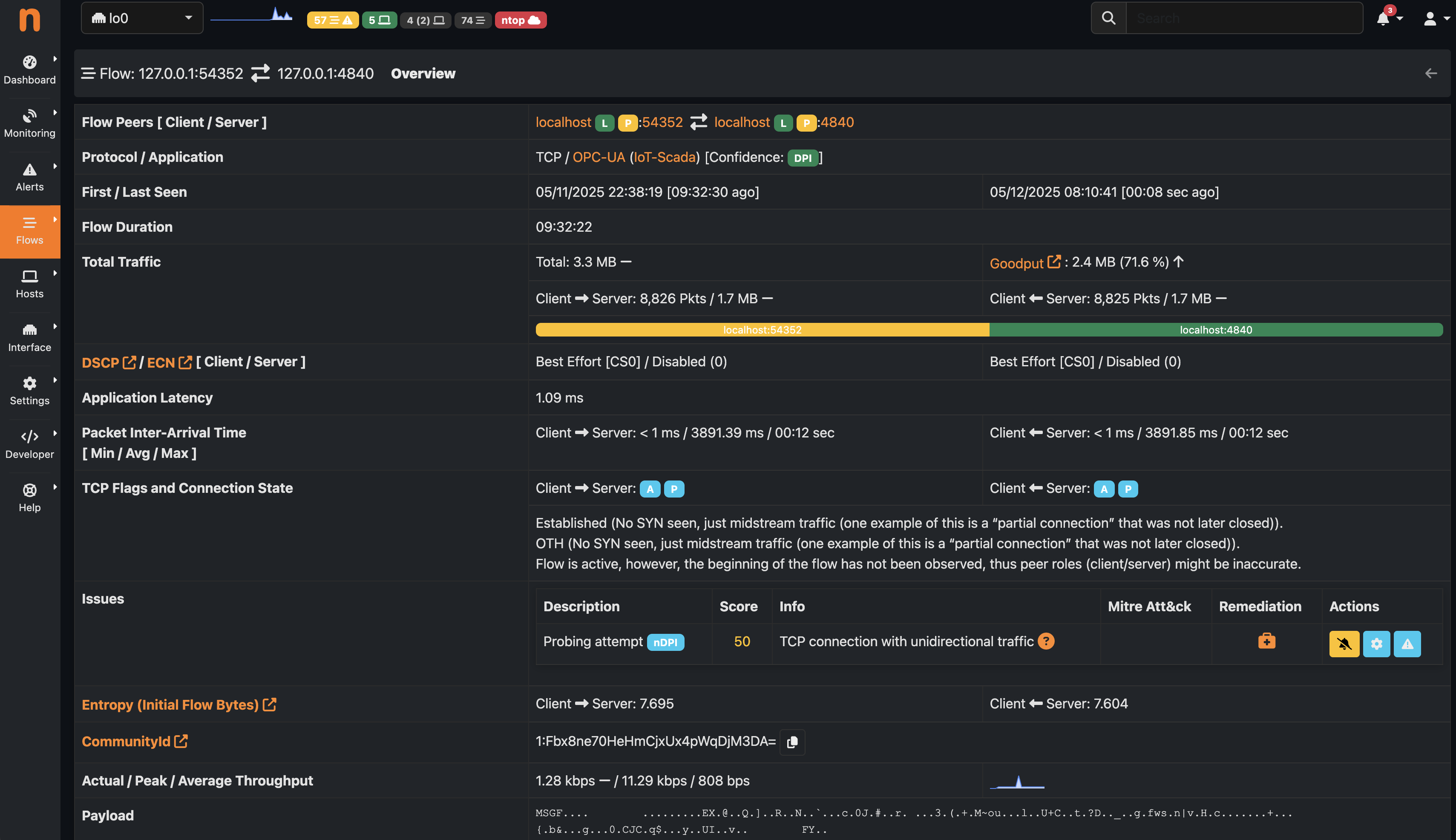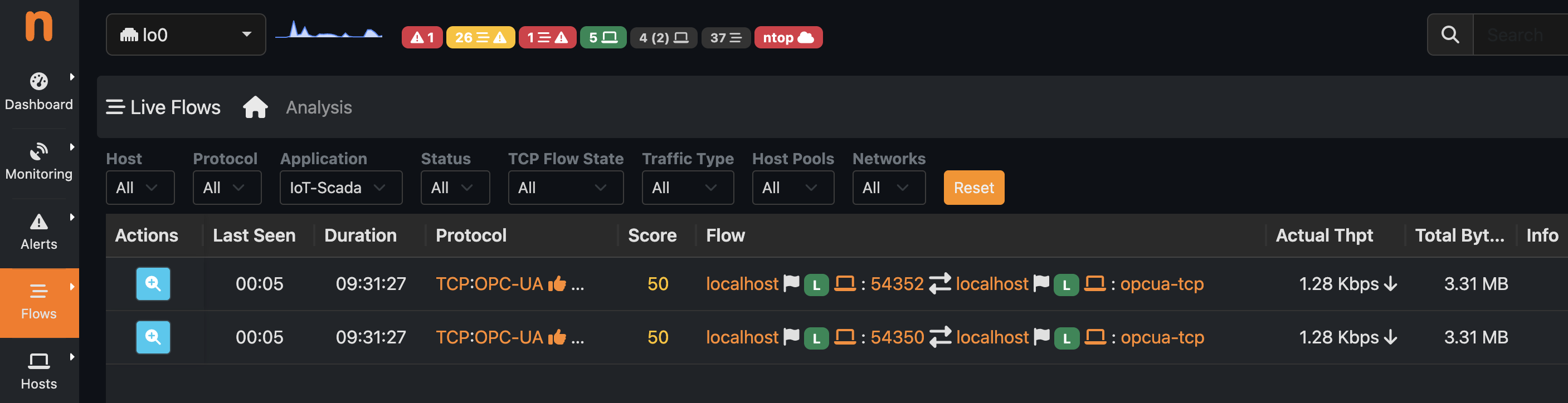 assuming there is OPC UA traffic on localhost, the OPC UA traffic would be